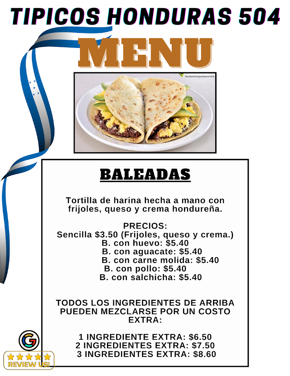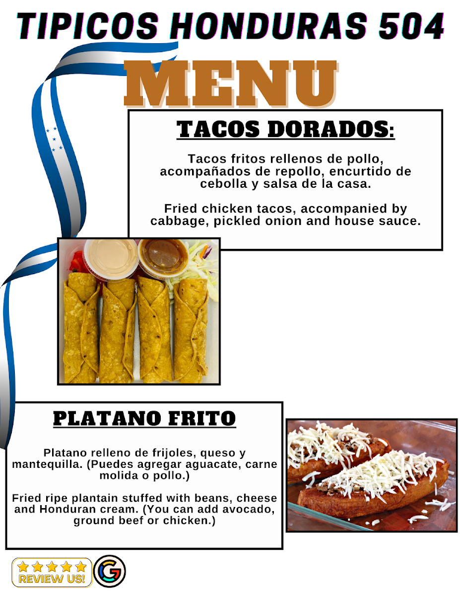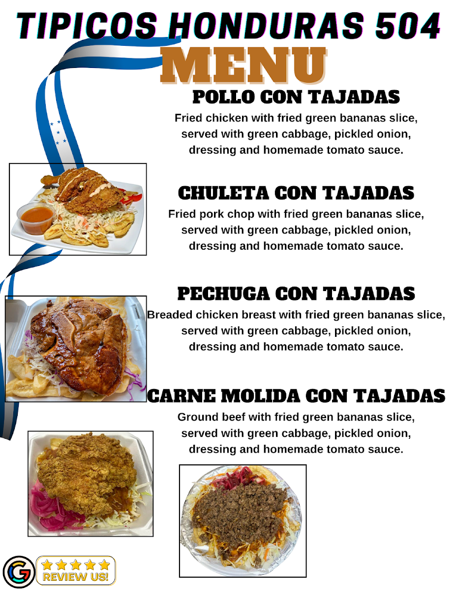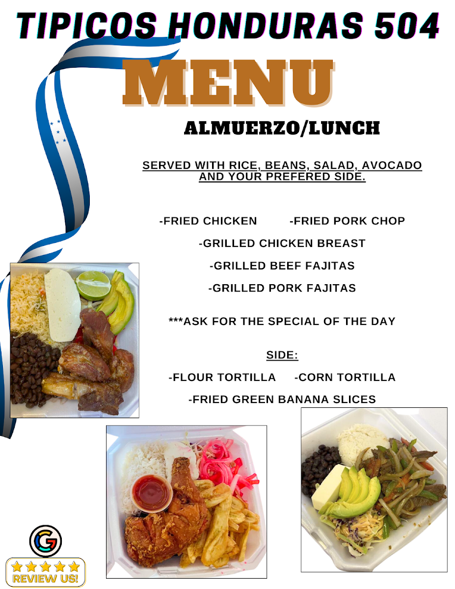 Típicos Honduras 504 Menu brings a lively mix of Honduran comfort flavors right to 21 Miracle Strip Pkwy SE in Fort Walton Beach, and it’s the kind of place where you can almost taste the home-style cooking before the plate even hits the table. As you look through the dishes, you’ll notice how the menu leans into rich, familiar flavors-think warm tortillas, hearty meats, and those little touches of seasoning that make each bite feel intentional.